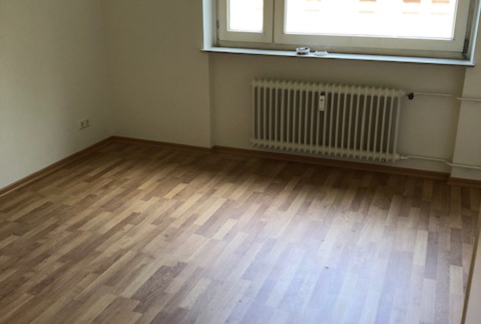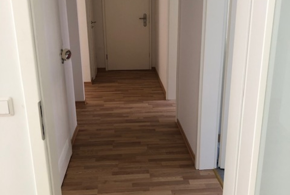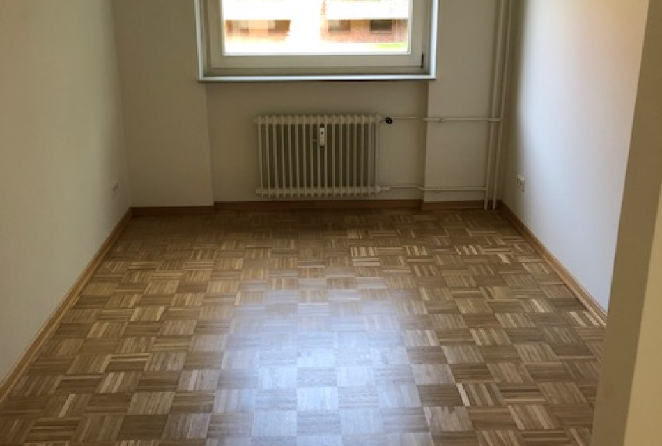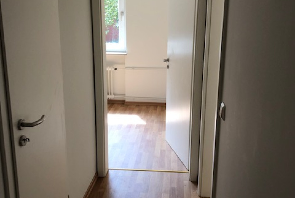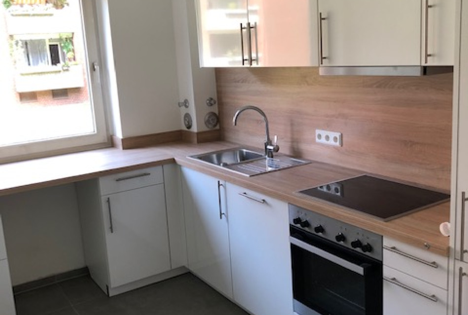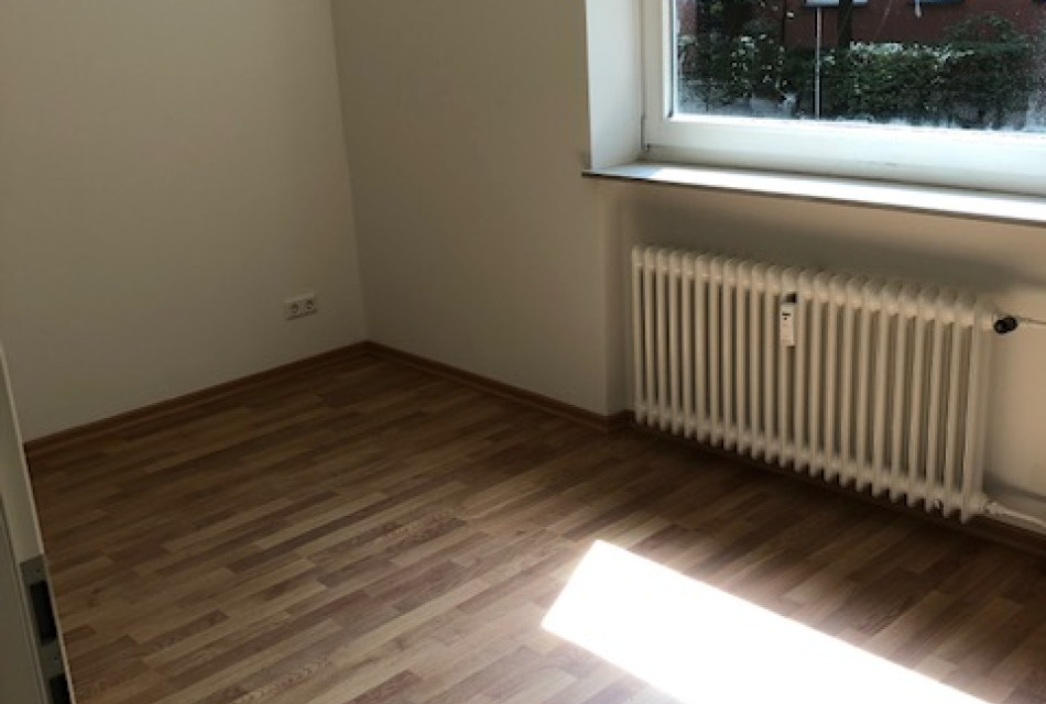 Musterwohnung in einem Mehrfamilienhaus in Langenhorn. Diese vollständig sanierte Wohnung verfügt über Wohn- und Schlafzimmer sowie zwei kleine Zimmer und ist ausgestattet mit einer Einbauküche und einem Vollbad. In der Wohnung befindet sich sowohl Laminat- als auch Parkettfußboden, Küche und Bad sind gefliest.