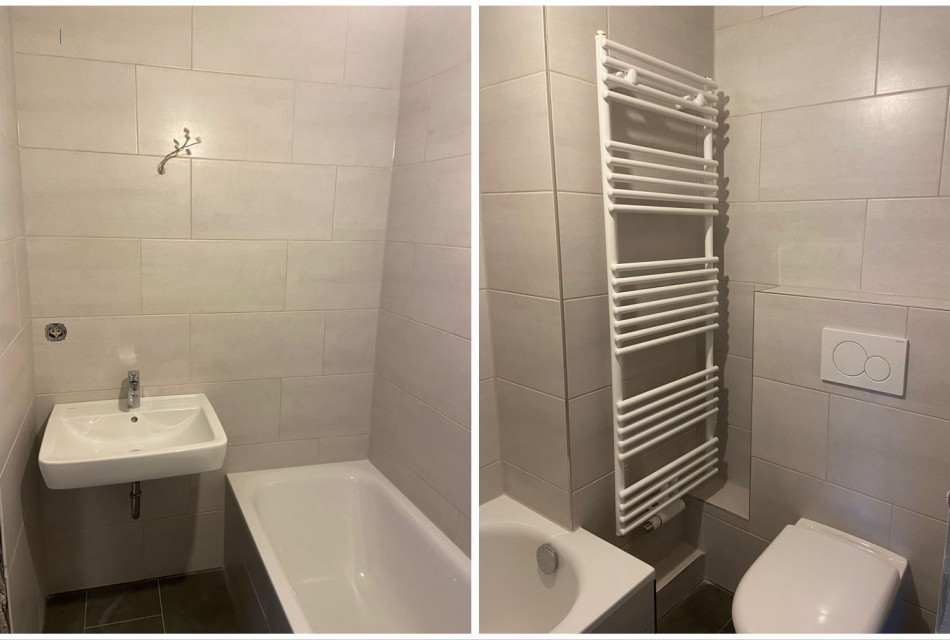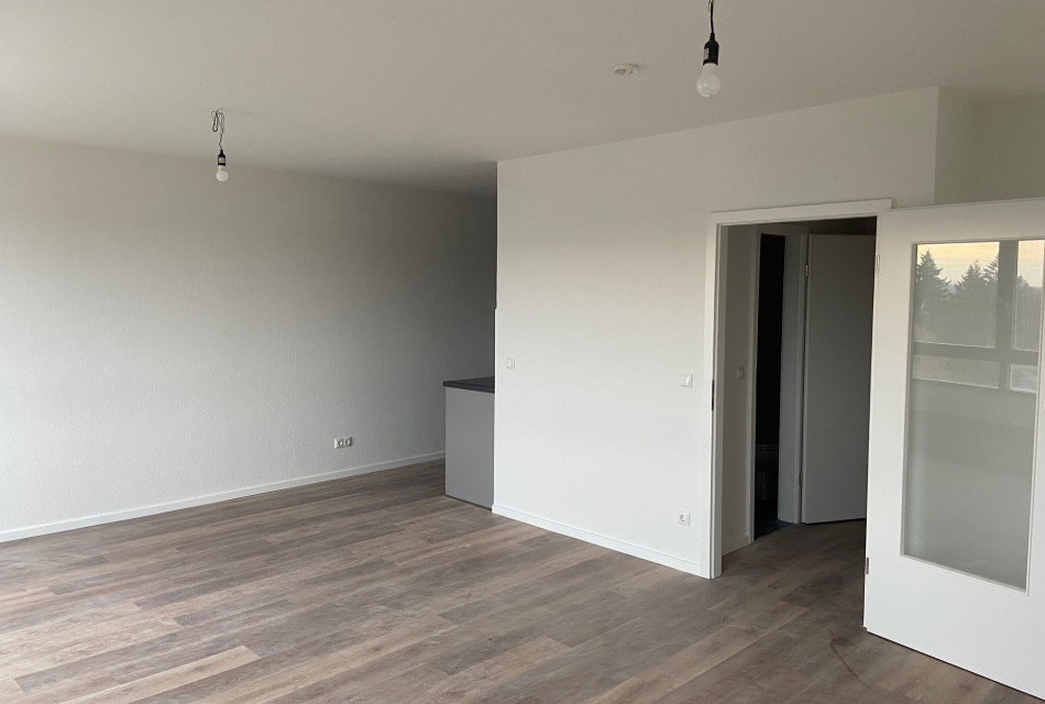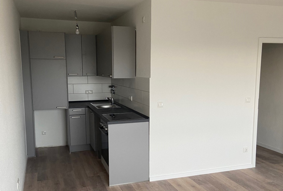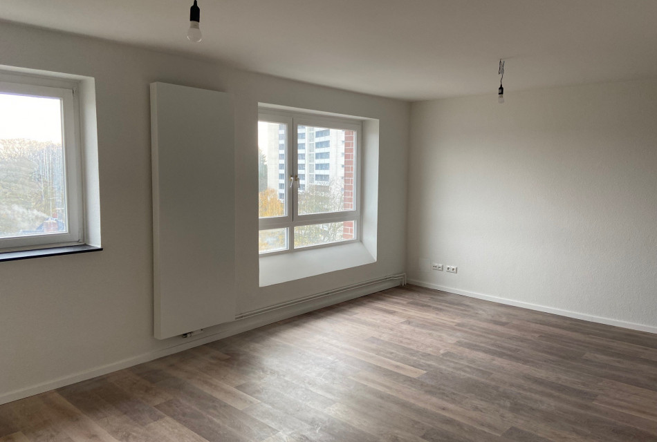 Dies ist eine Musterwohnung im Hochhaus des Einkaufszentrums Sachsenwald-Markt. Die vollständig modernisierte 1-Zimmer-Wohnung verfügt über eine Einbauküche, ein Vollbad, einen Abstellraum innerhalb der Wohnung und einen hochwertigen Designbodenbelag. Die Aussicht über Reinbek und die Umgebung ist je nach Etage beeindruckend.